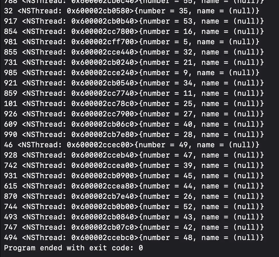 queue.addOperation { print(n, Thread.current) }