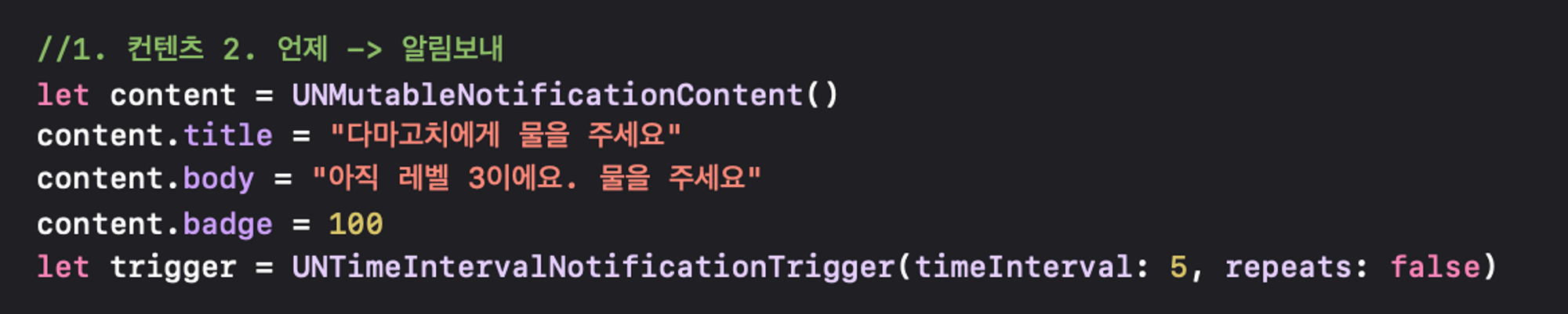 Content: 알림에 보내고 싶은 메세지가 무엇인가